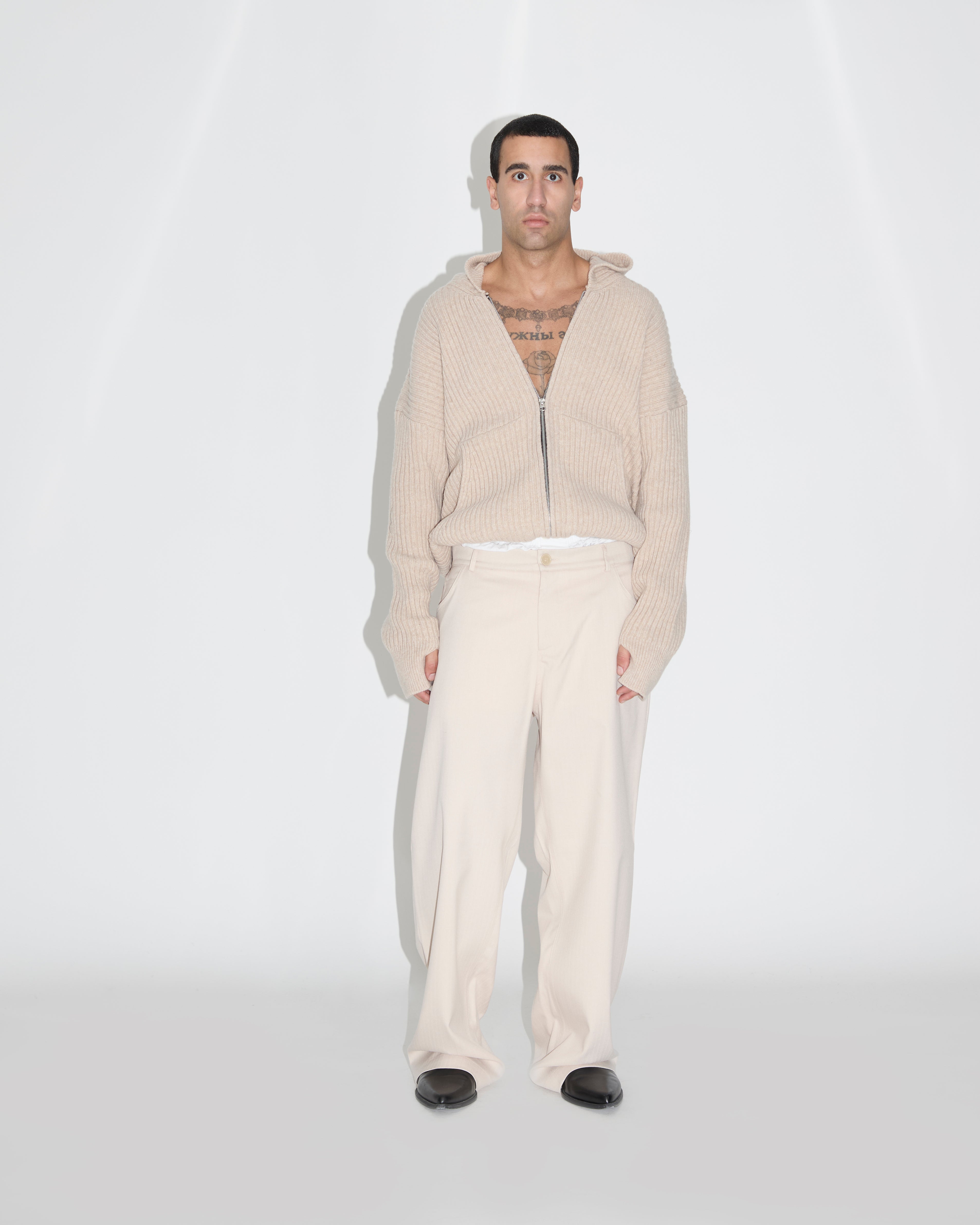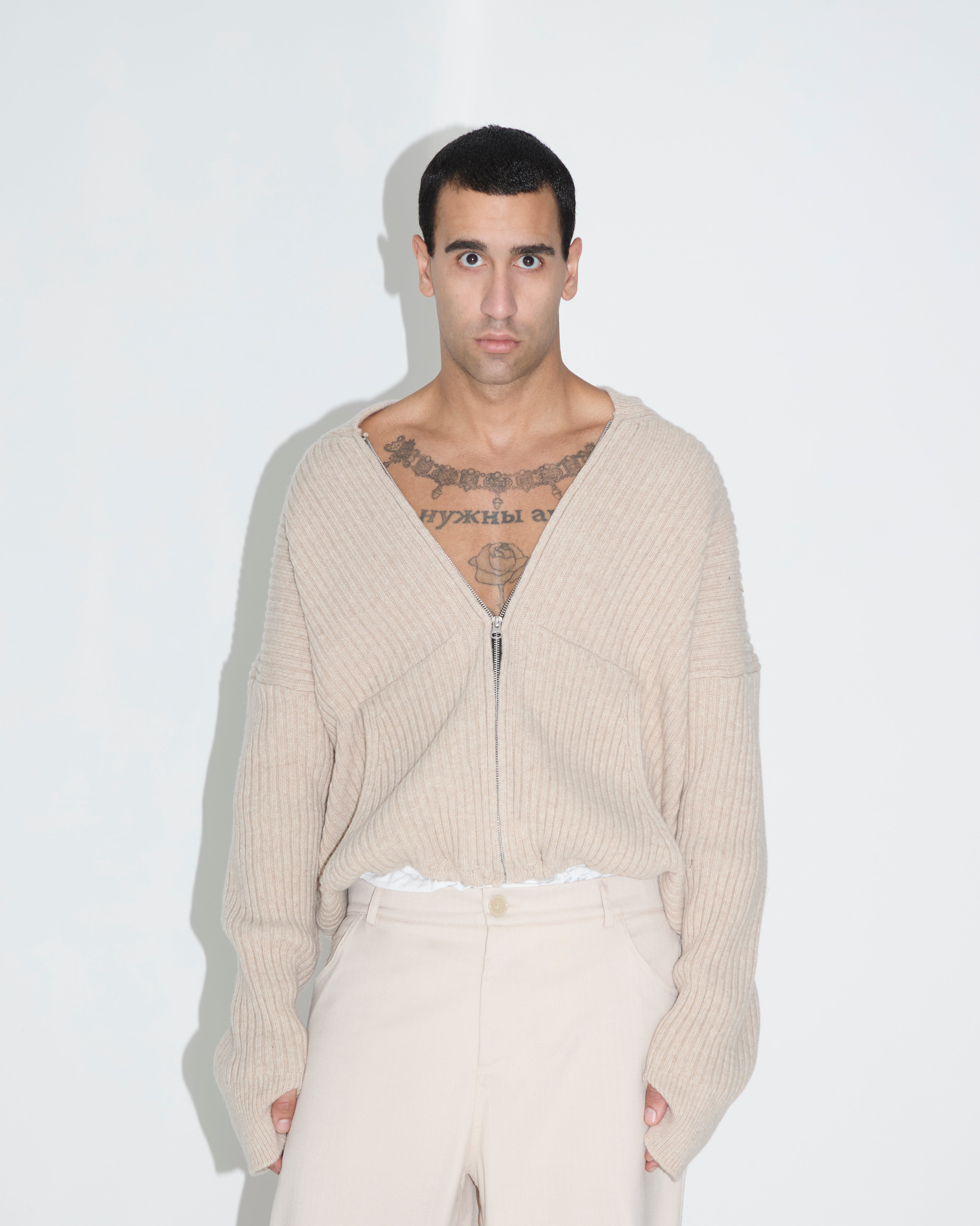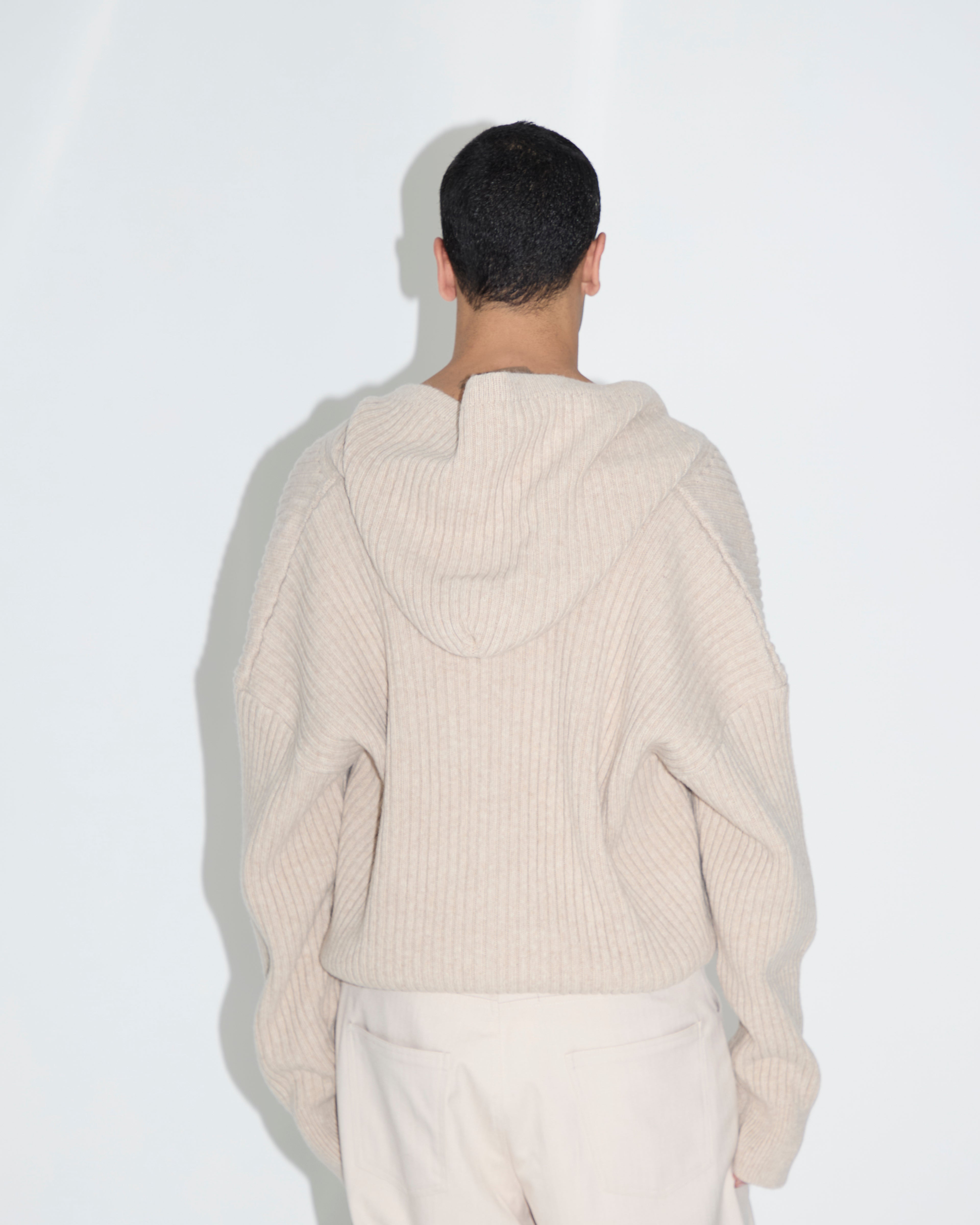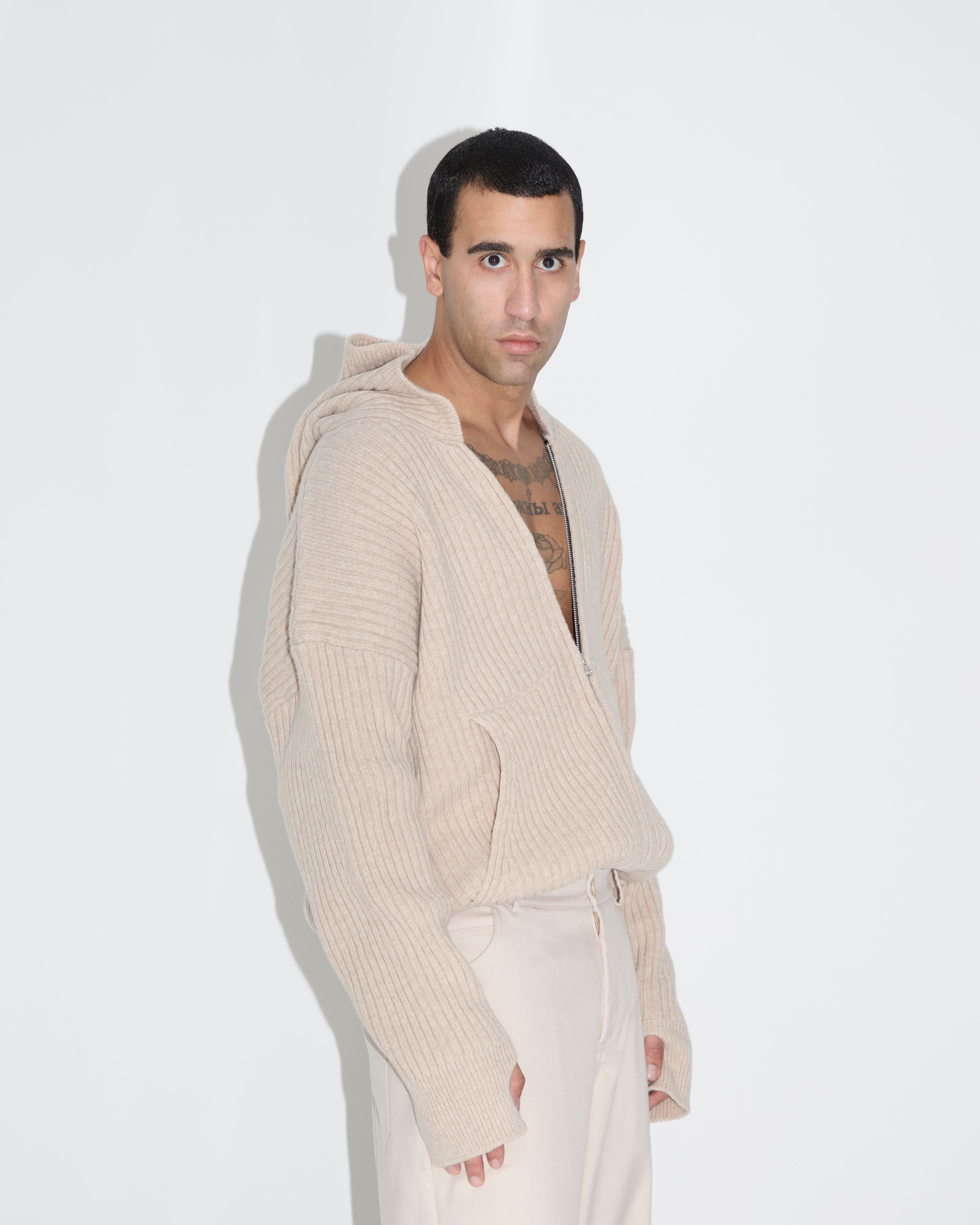 -Felpa con cappuccio e zip in maglia a coste