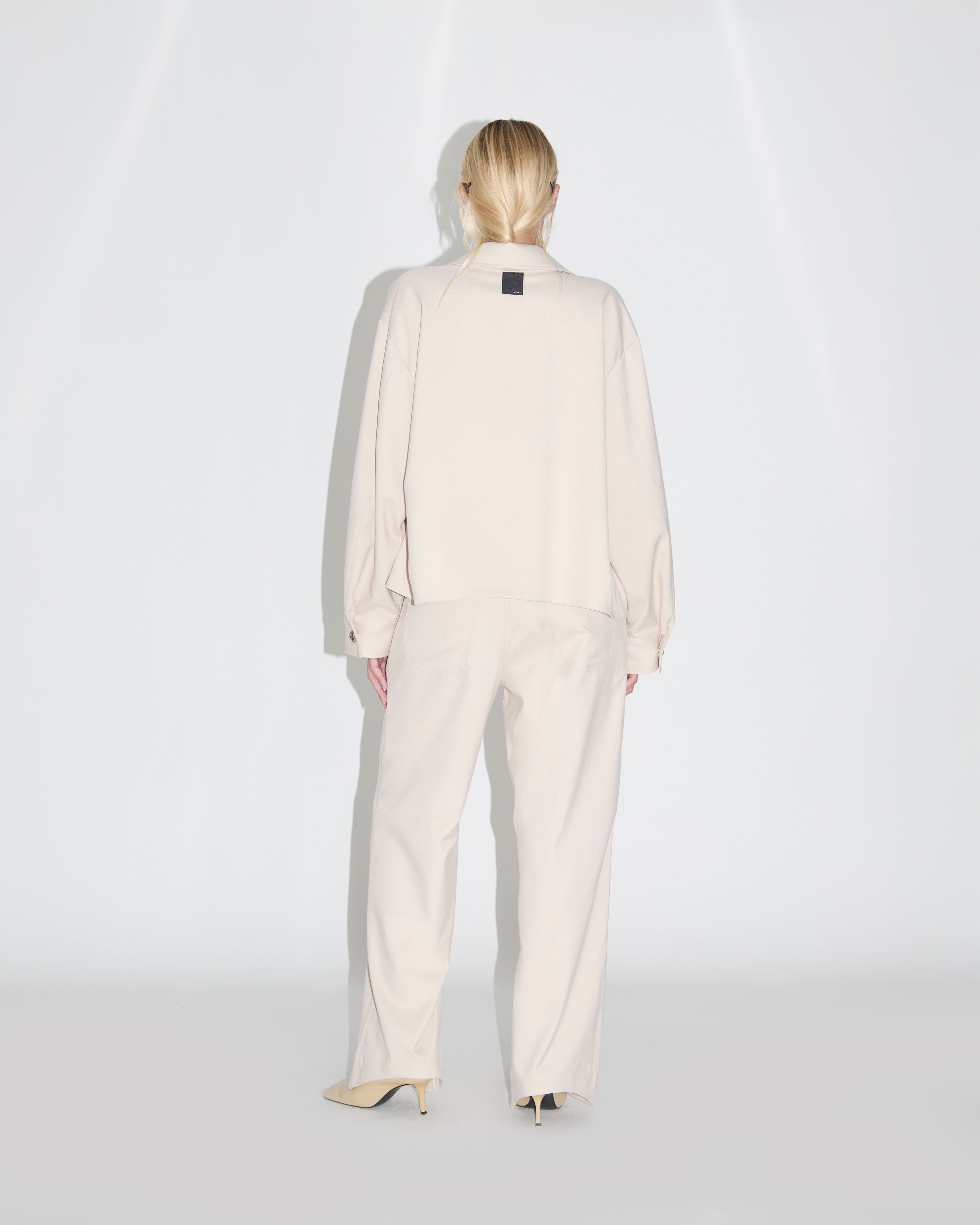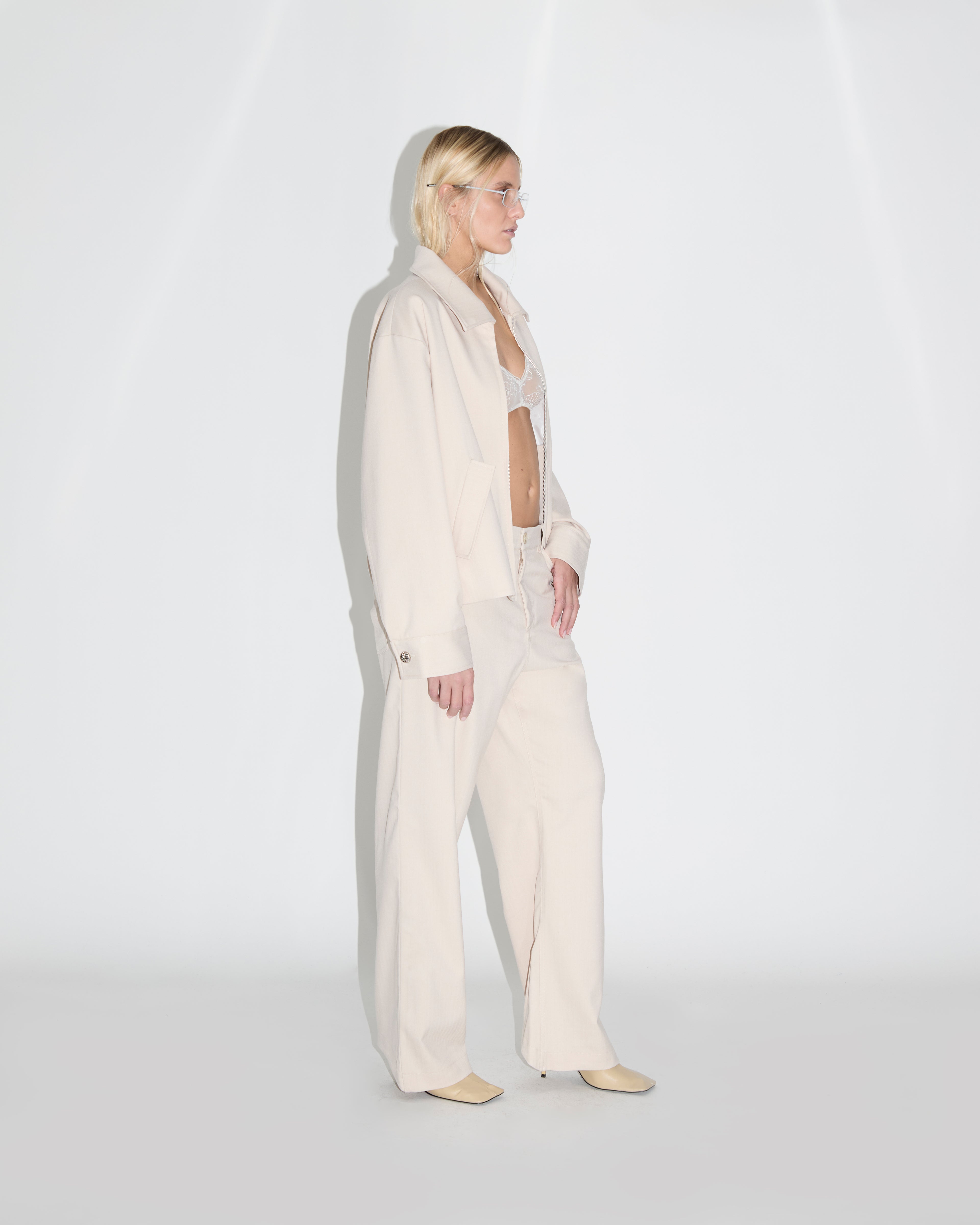 -Il nostro pantalone ha come caratteristica identificativa la parte posteriore del fondo che viene stondata risultando più corta della parte parte anteriore
