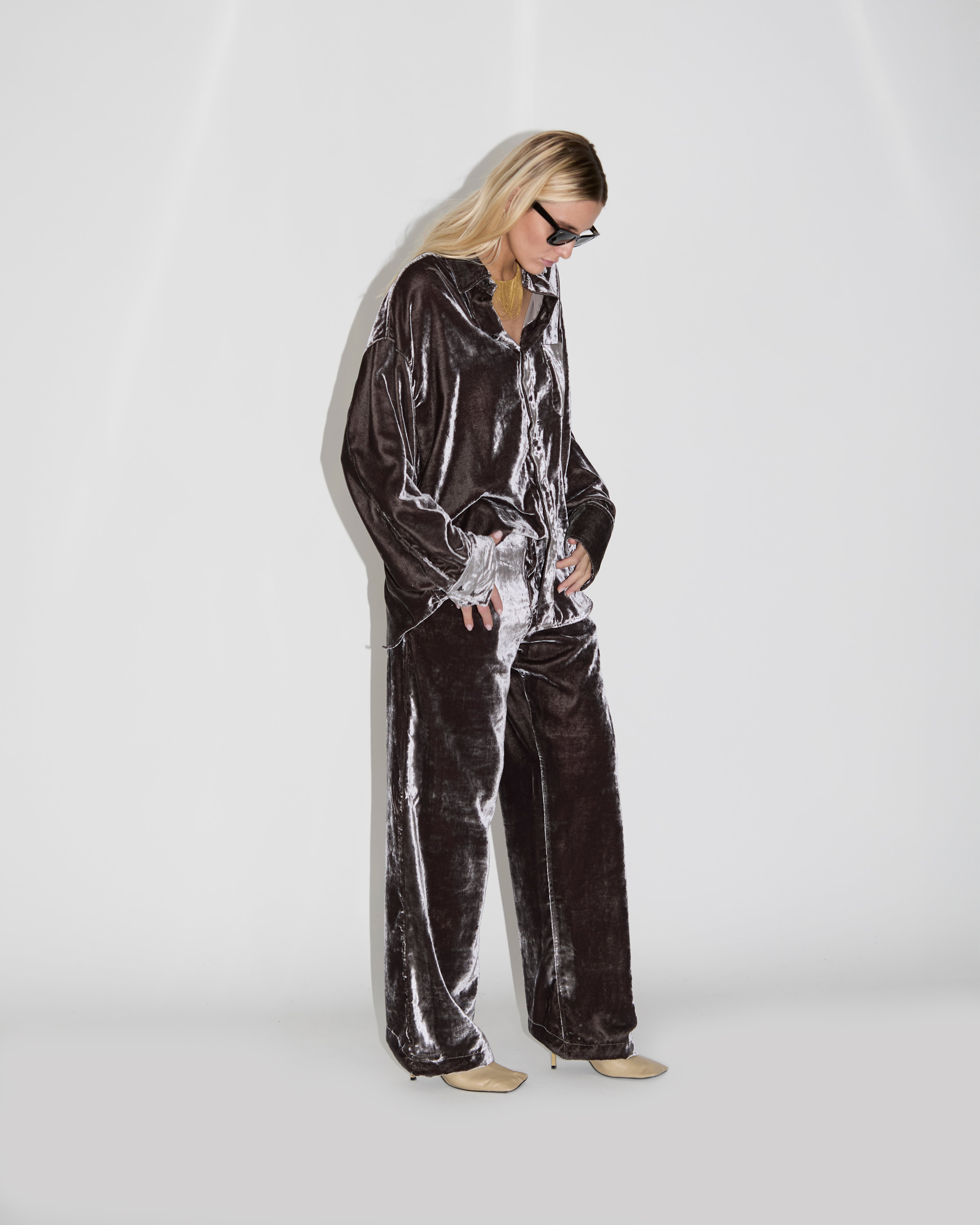-Il nostro pantalone ha come caratteristica identificativa la parte posteriore del fondo che viene stondata risultando più corta della parte parte anteriore