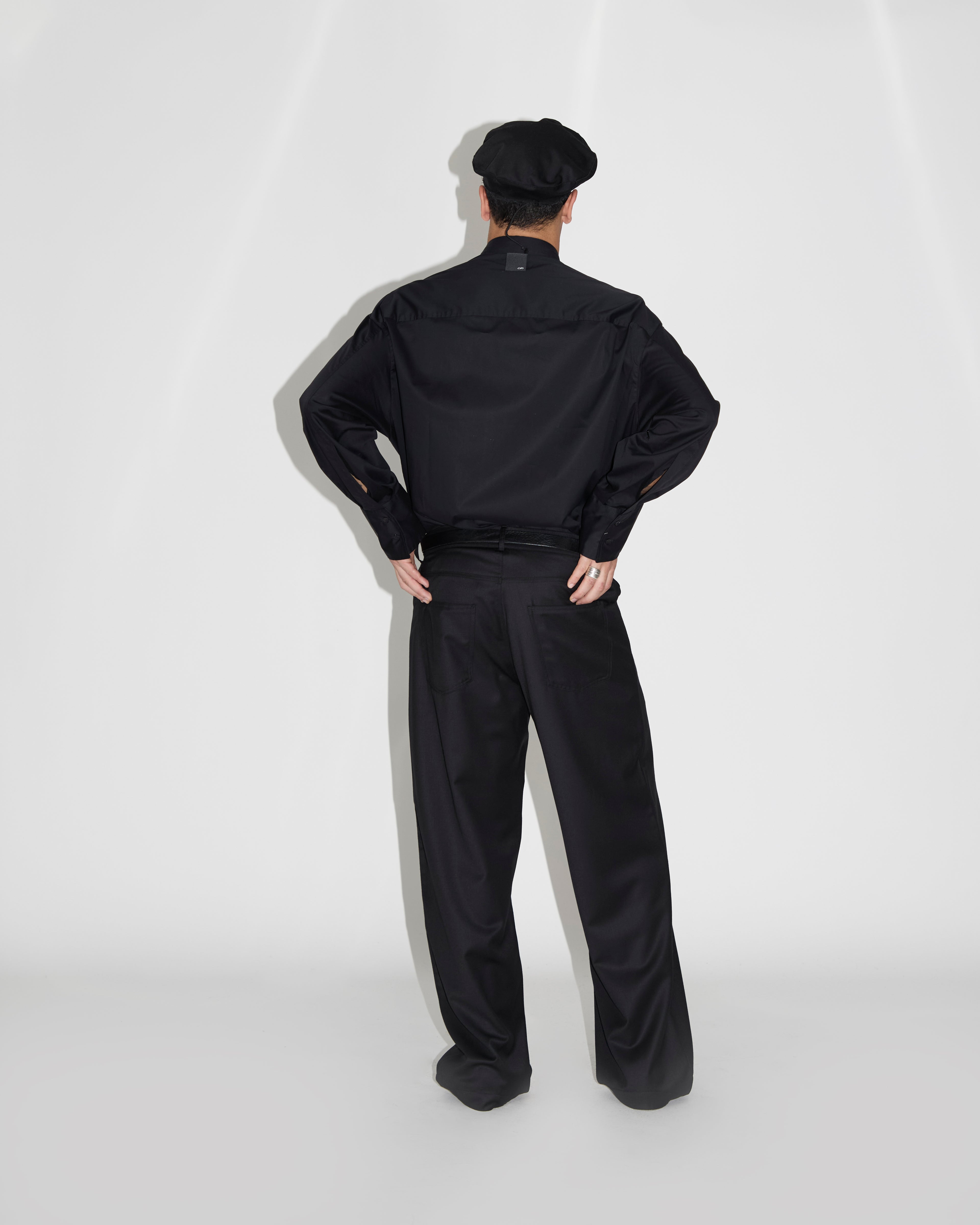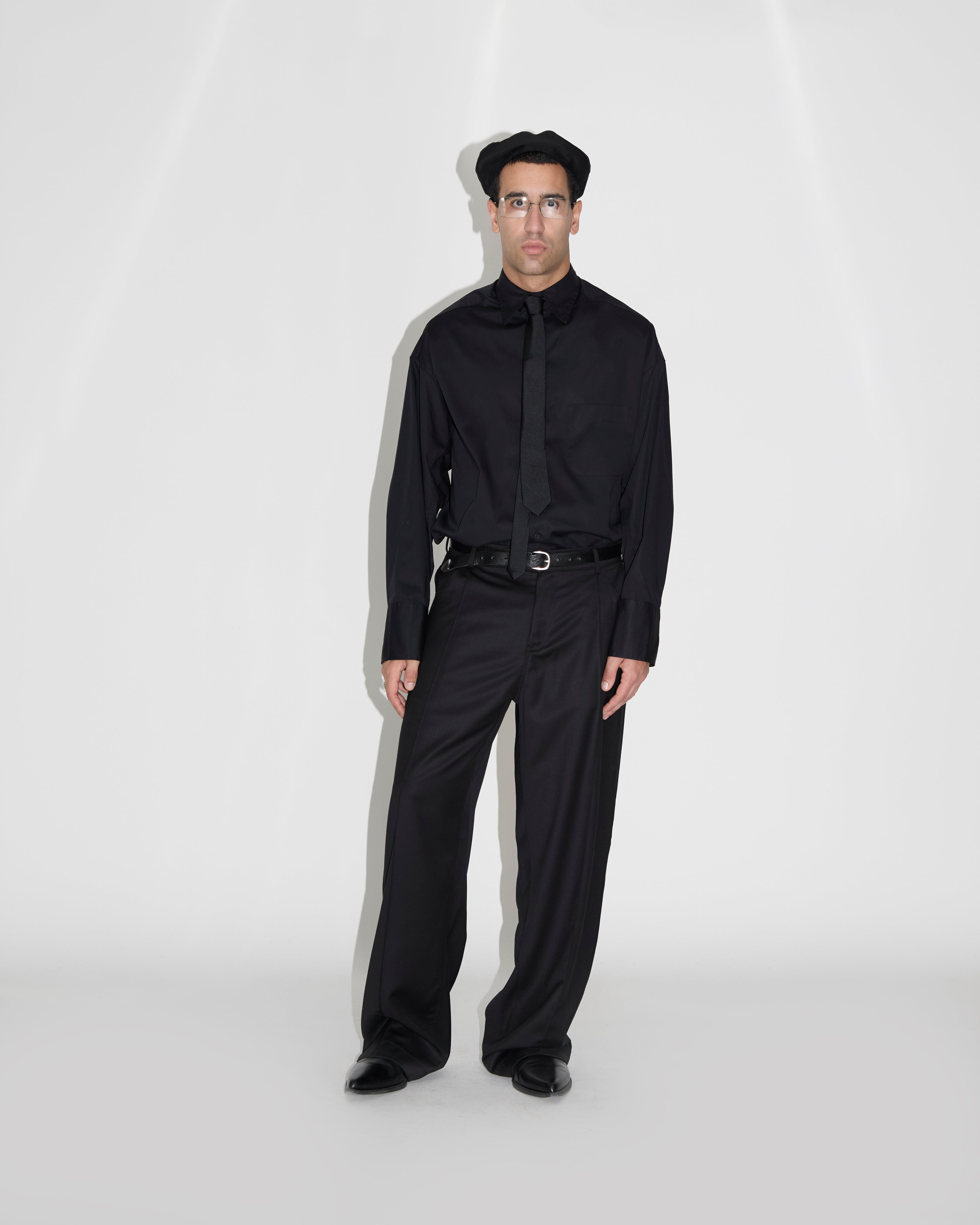 -Il nostro pantalone ha come caratteristica identificativa la parte posteriore del fondo che viene stondata risultando più corta della parte parte anteriore