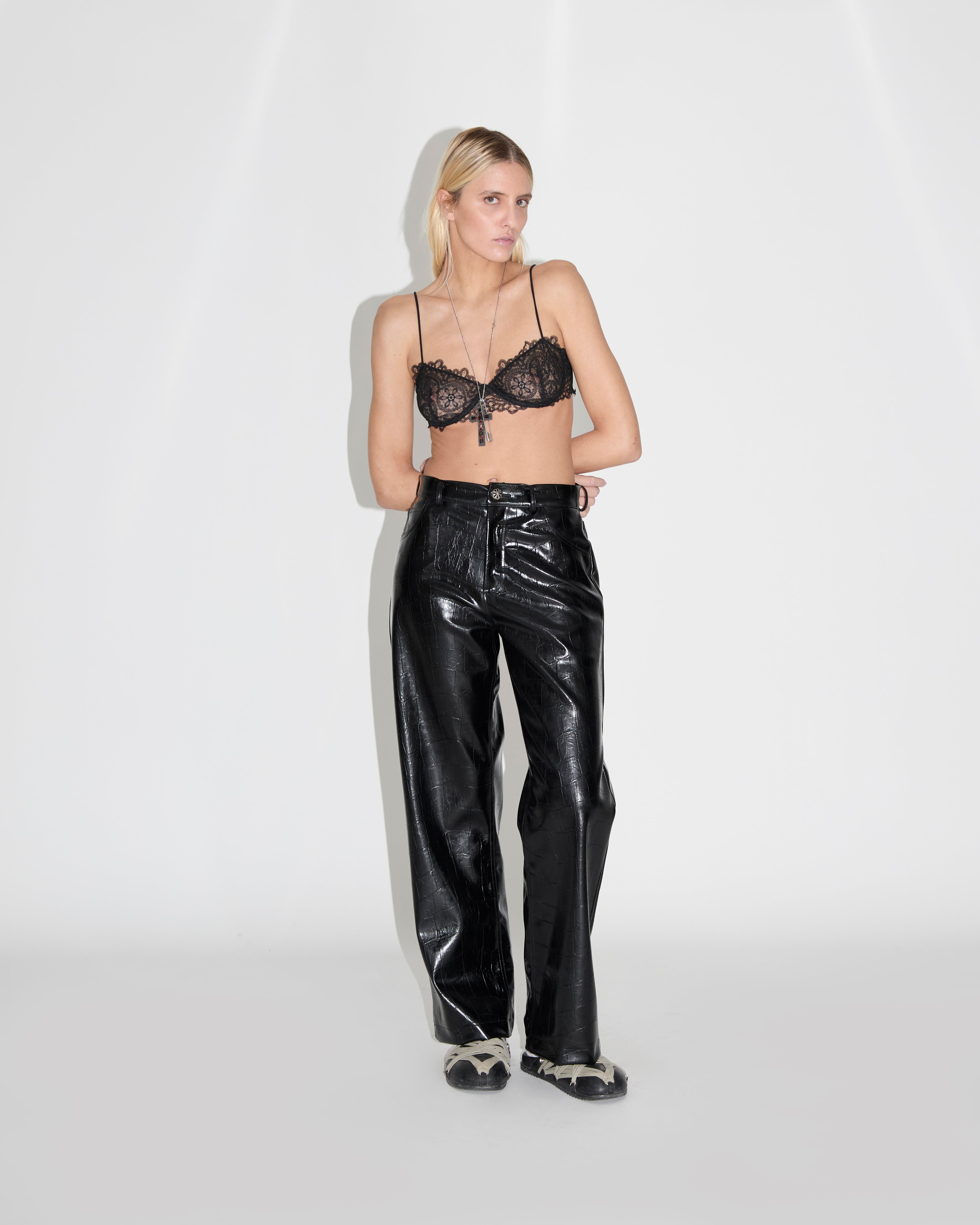 -Il nostro pantalone ha come caratteristica identificativa la parte posteriore del fondo che viene stondata risultando più corta della parte parte anteriore