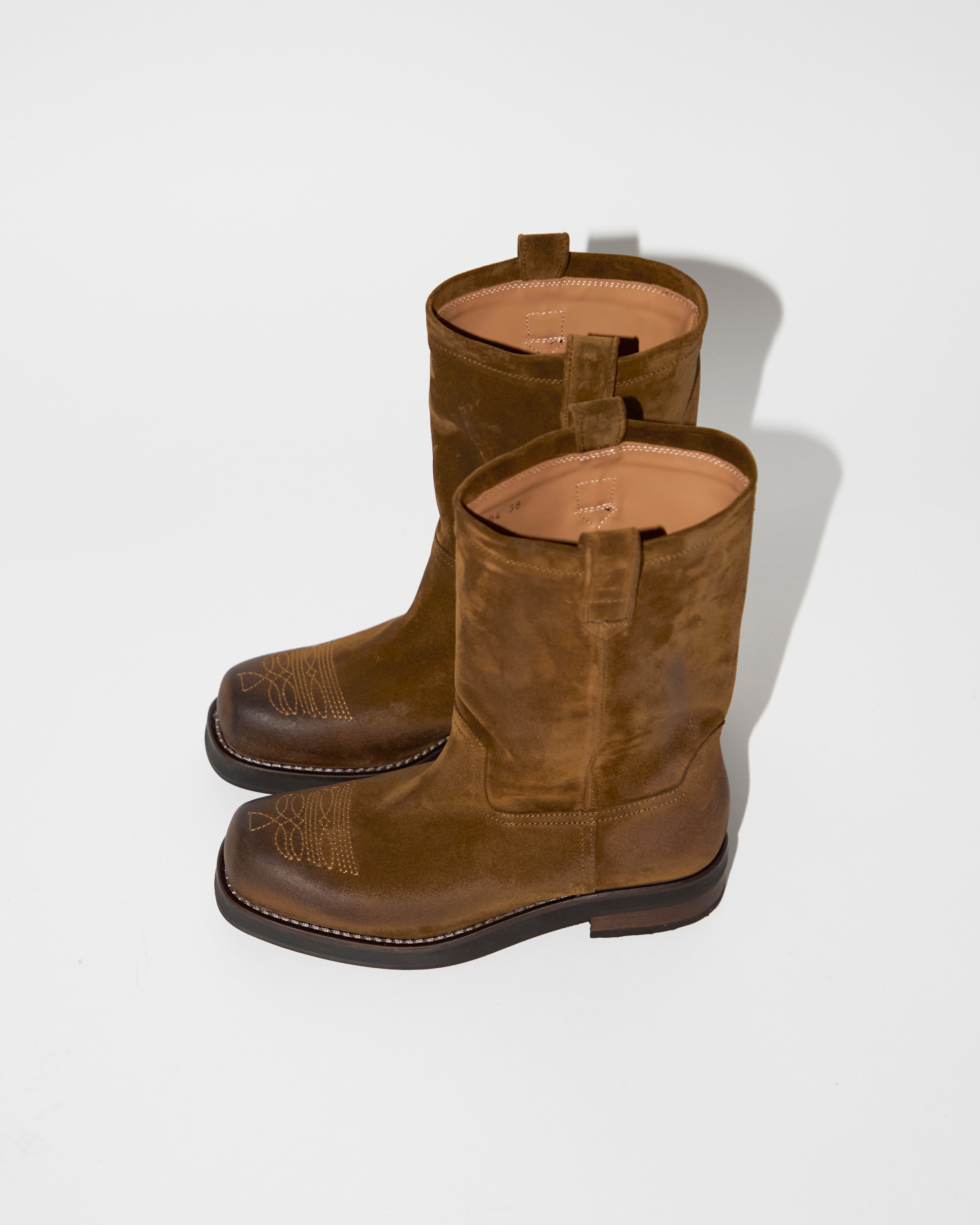 -Tomaia in pregiato suede marrone scuro con finitura vissuta